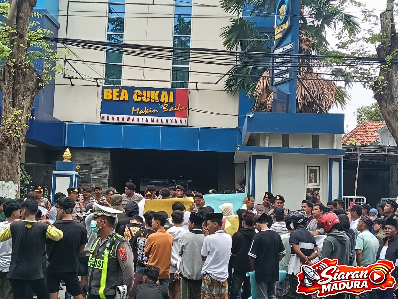 PAMEKASAN – SiaranMadura – Puluhan massa aksi organisasi masyarakat yang bernaung dalam Lingkar Melati Bersatu menggelar demo di Kantor Bea Cukai Madura, Jl. Panglima Sudirman No.2, RW.03, Rw. 03, Barurambat Kota, Madura, Kabupaten Pamekasan, Jawa Timur 69317. Senin (23/02/26).