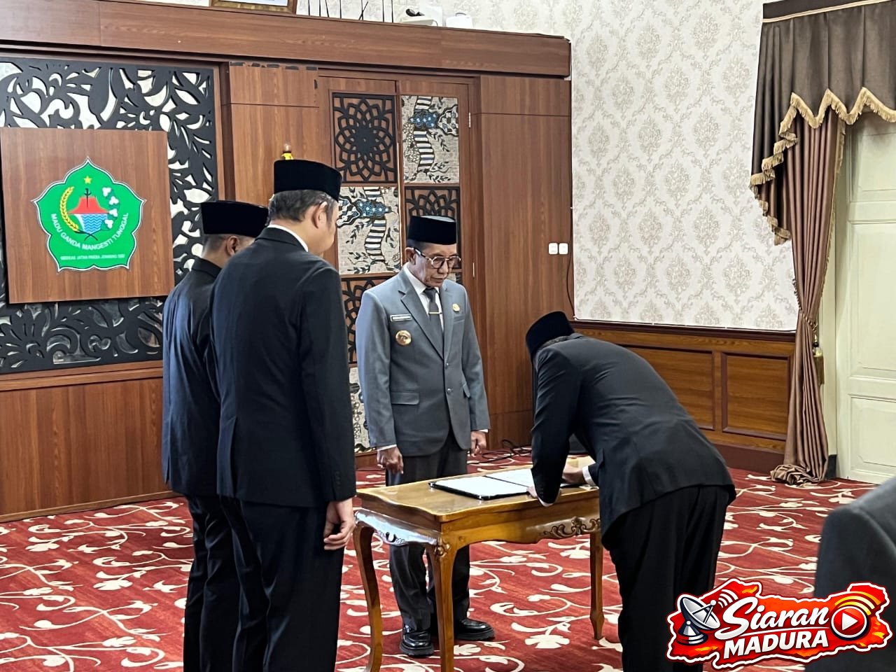 Pamekasan– SiaranMadura – Bupati Pamekasan, KH. Kholilurrahman, secara resmi melantik Taufikurrachman sebagai Sekretaris Daerah (Sekda) definitif Kabupaten Pamekasan. Pengambilan sumpah jabatan berlangsung khidmat di ruang Peringgitan Dalam Rumah Dinas Bupati Pamekasan, Kamis (26/02/2026).