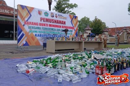 PAMEKASAN, SiaranMadura.com – Ribuan minuman keras (miras) berhasil diamankan aparat gabungan kepolisian dan Satuan Polisi Pamong Praja (Satpol PP) dari berbagai lokasi di Kabupaten Pamekasan. Barang ...