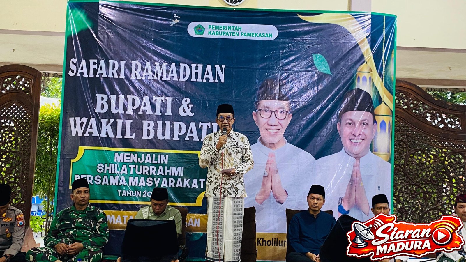 Pamekasan – Siaranmadura – Bupati Pamekasan KH. Kholilurrahman meyakini bisa memajukan Pamekasan di tengah gempuran efisiensi anggaran selama masa kepemimpinannya ke depan. Hal itu disampaikan Bupati dalam agenda Safari Ramadan yang digelar di Pendapa Kecamatan Pamekasan, Kamis (12/03/26).