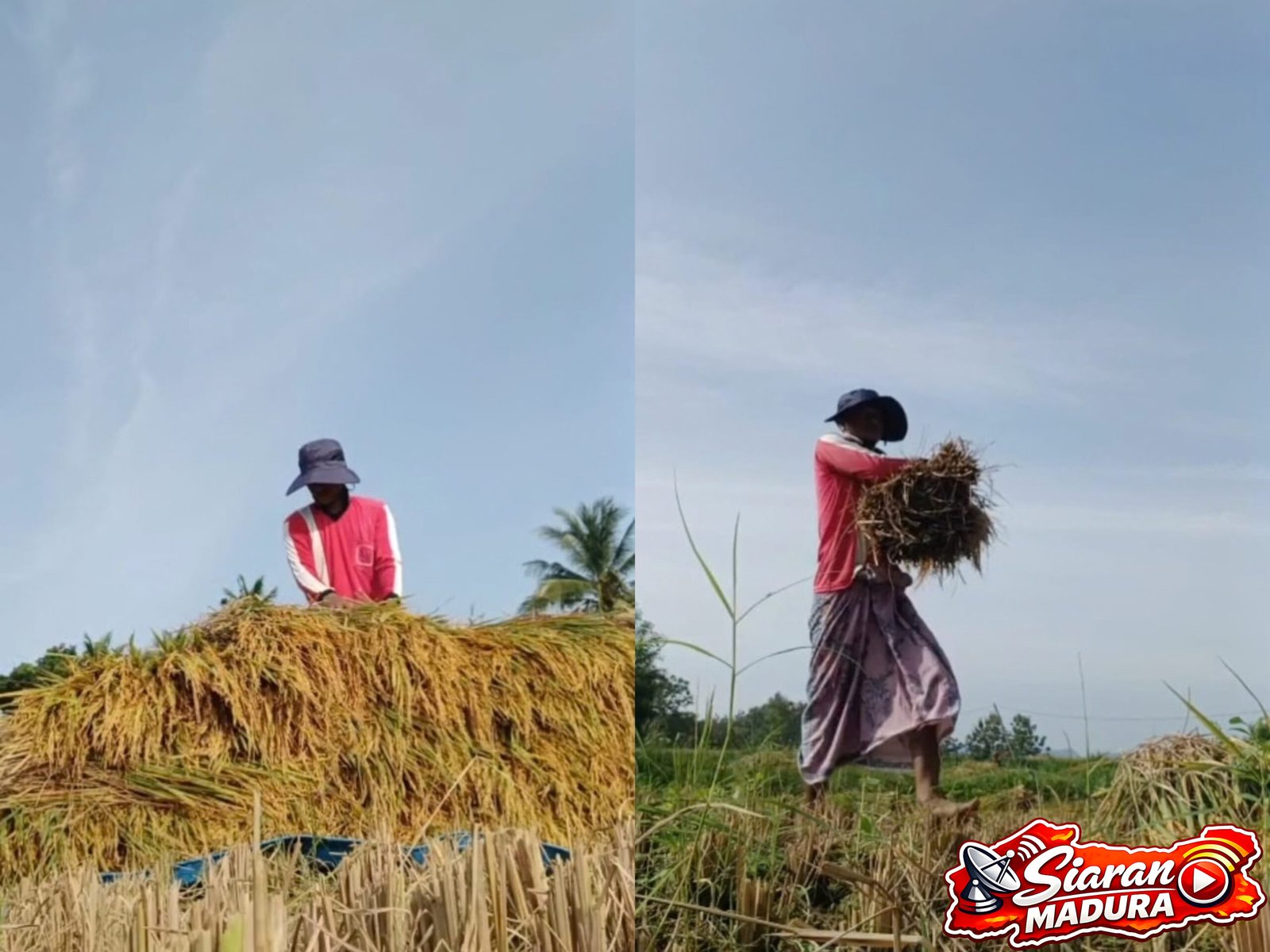 Pamekasan – SiaranMadura – Bulan suci Ramadan tidak menyurutkan semangat para petani untuk tetap bekerja di sawah. Seperti yang terlihat di sejumlah lahan pertanian di Kabupaten Pamekasan, para petani tetap melakukan aktivitas panen padi atau yang biasa disebut ngarit padi, meskipun sedang menjalankan ibadah puasa.